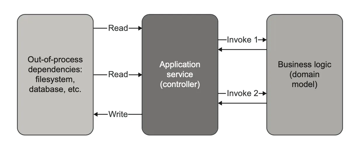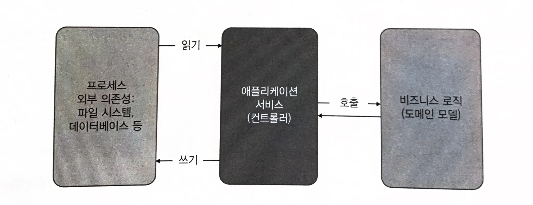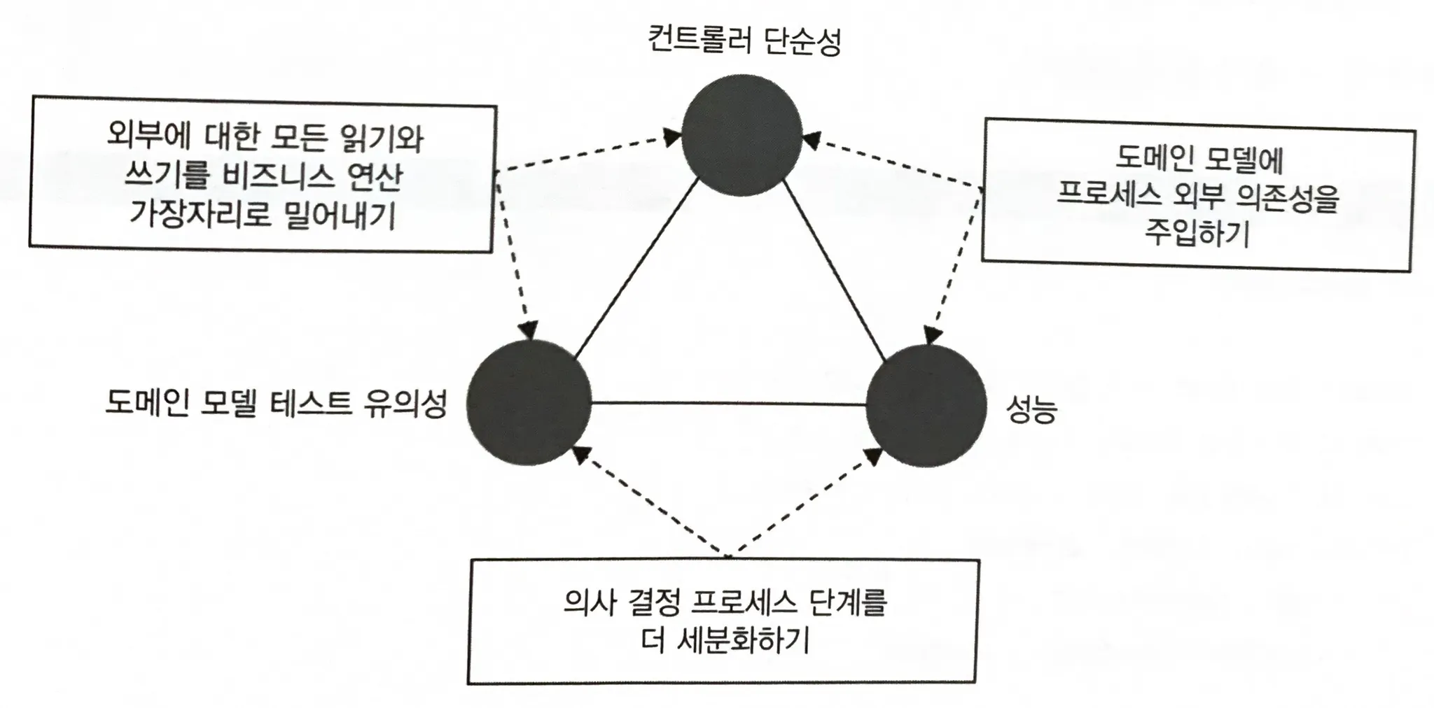 도메인 모델에 프로세스 외부 의존성을 주입하고 비즈니스 로직이 해당 의존성을 호출할 시점을 직접 결정할 수 있게 한다. → 도메인 테스트 유의성 저하