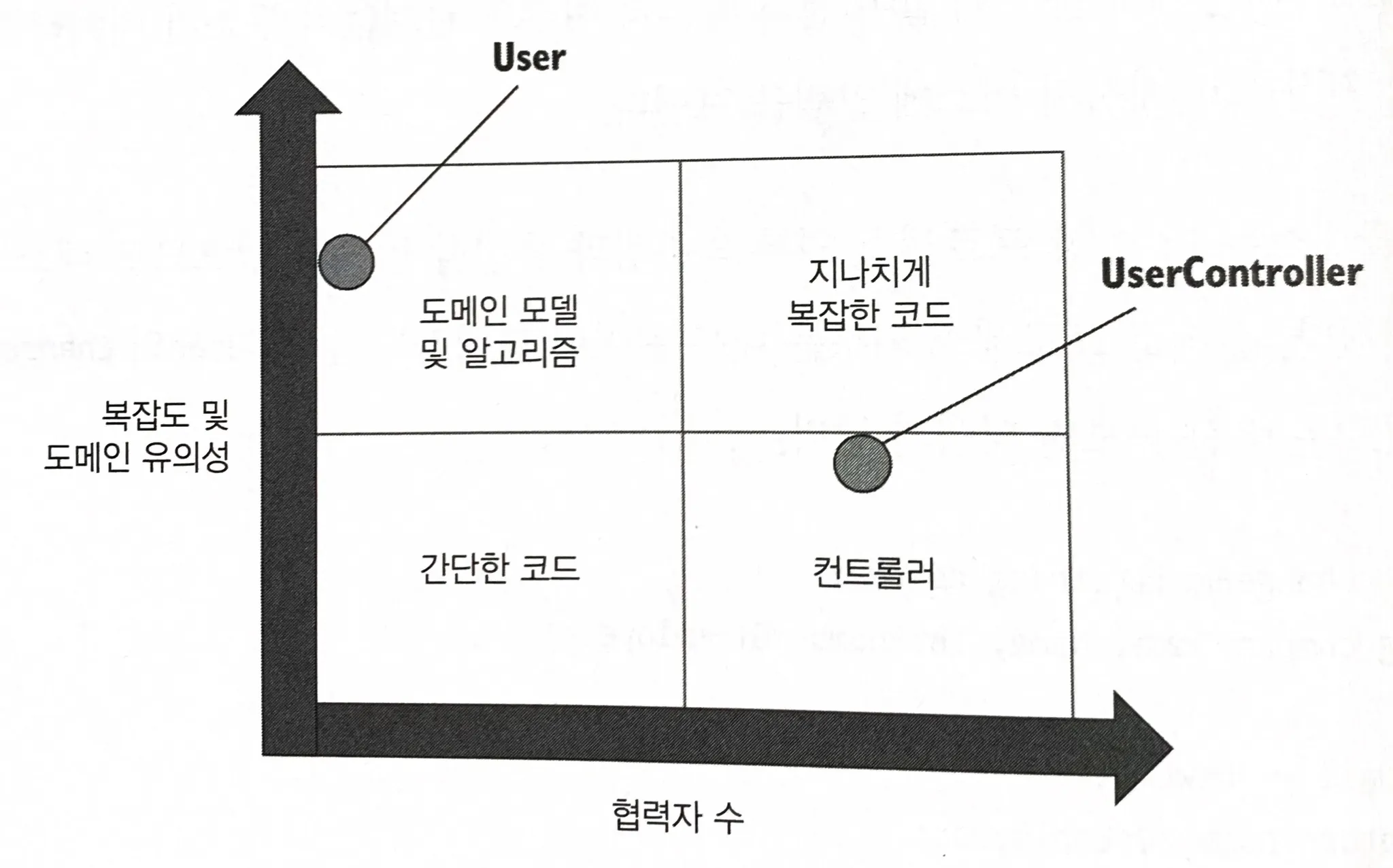 도메인 모델 테스트 유의성 : 도메인 클래스의 협력자 수와 유형에 따른 함수