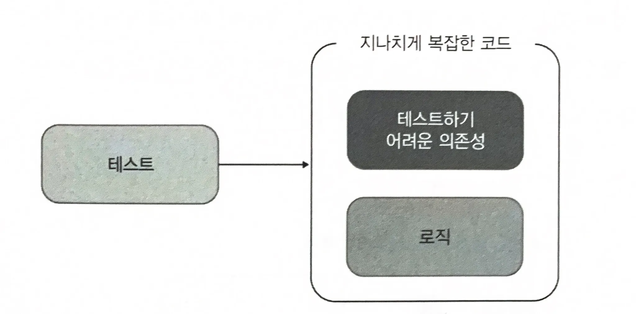 프로세스 외부 의존성이 주입되지 않고 직접 인스턴스화된다. 테스트에서 문제가 될 것이다.