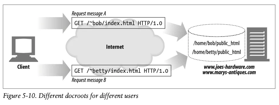 docroot의 또 다른 대표적인 활용은, 사용자들이 한 대의 웹 서버에서 각자의 개인 웹 사이트를 만들 수 있도록 해주는 것이다.