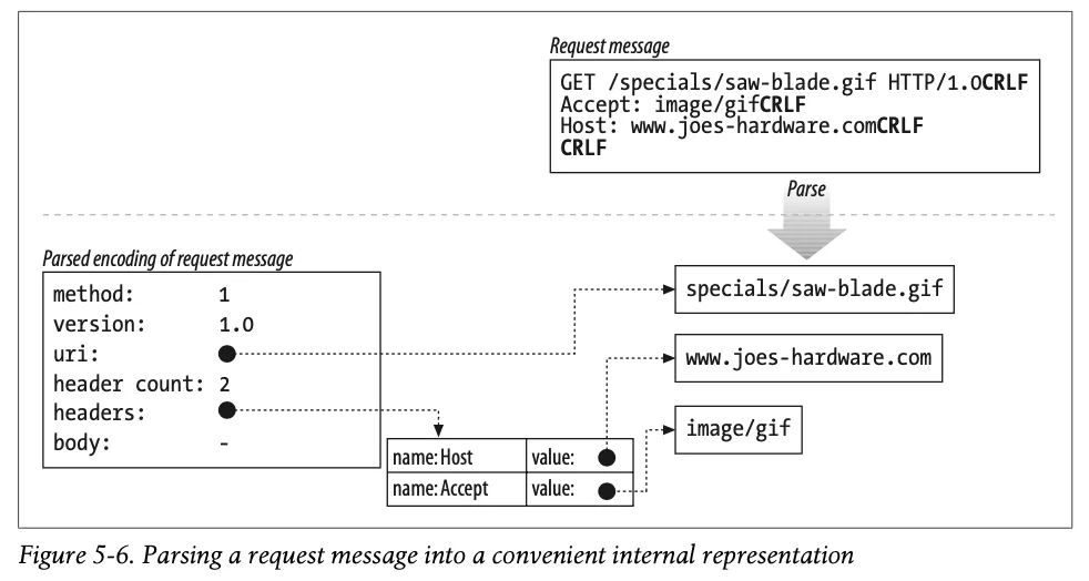 몇몇 웹 서버는 요청 메시지를 쉽게 다룰 수 있도록 내부의 자료 구조에 저장한다.