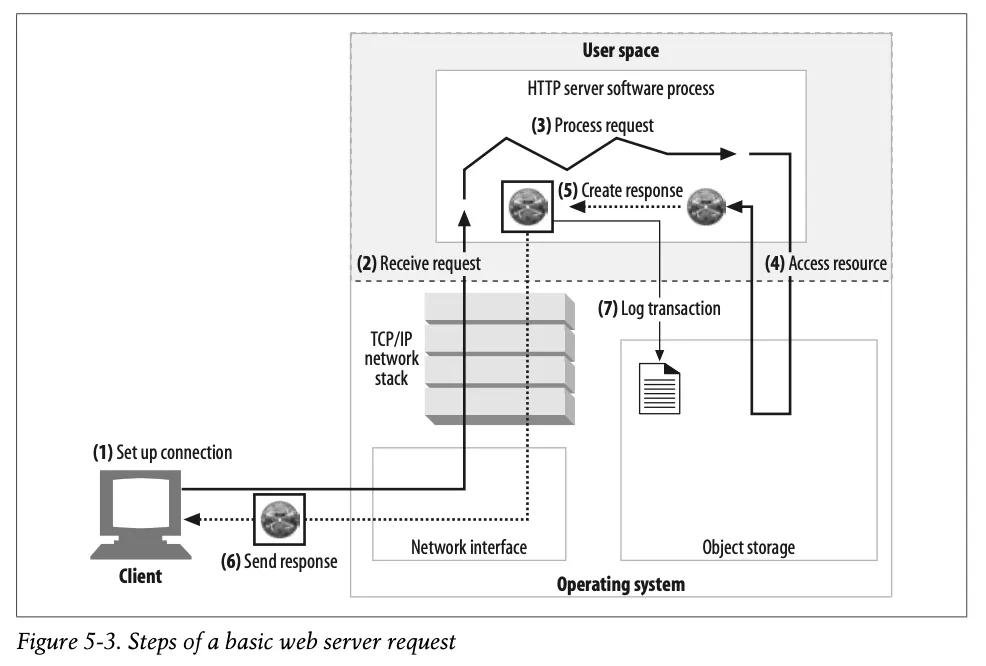 최신식 웹 서버는 보다 복잡하지만 공통적으로 그림 5-3에서 보이는 몇가지 일들을 수행한다.