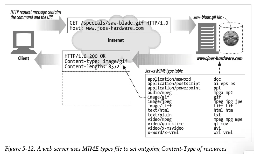 mime.types : 웹 서버는 MIME 타입을 나타내기 위해 파일 이름의 확장자를 사용할 수 있다.(그림 5-12)