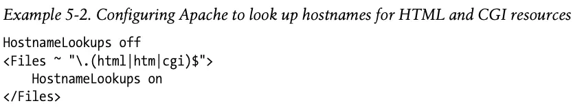 예 5-2의 아파치 설정 지시자는 HTML과 CGI 리소스만을 위해 호스트명 분석을 켠다.