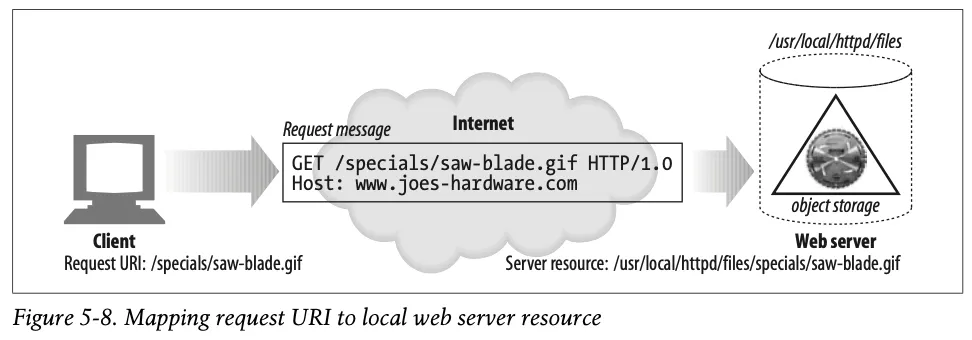 웹 서버는 여러 종류의 리소스 매핑을 지원한다. 리소스 매핑의 가장 단순한 형태는 요청 URI를 웹 서버의 파일 시스템 안에 있는 파일 이름으로 사용하는 것이다.