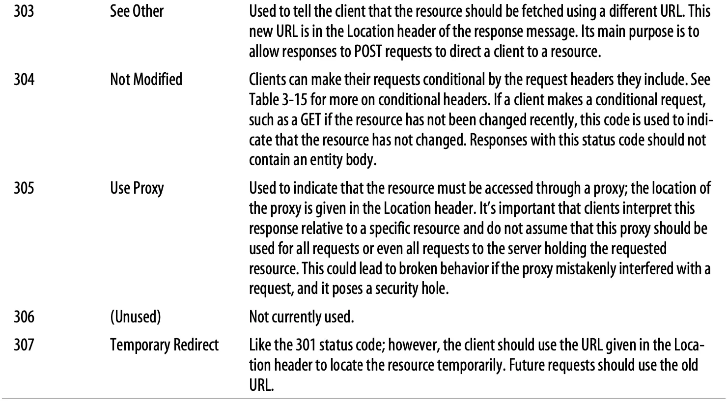 Table 3-8. Redirection status codes and reason phrases