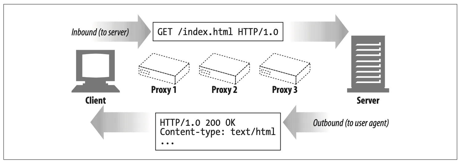 Figure 3-1. Messages travel inbound to the origin server and outbound back to the client