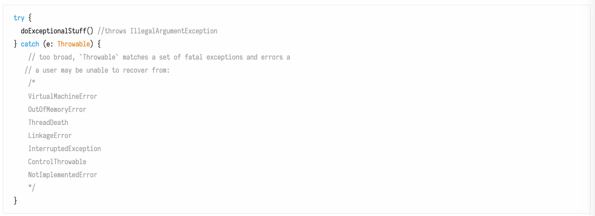 They often lead to incorrect and dangerous code because Throwable is an open hierarchy where you may catch more than you originally intended to.