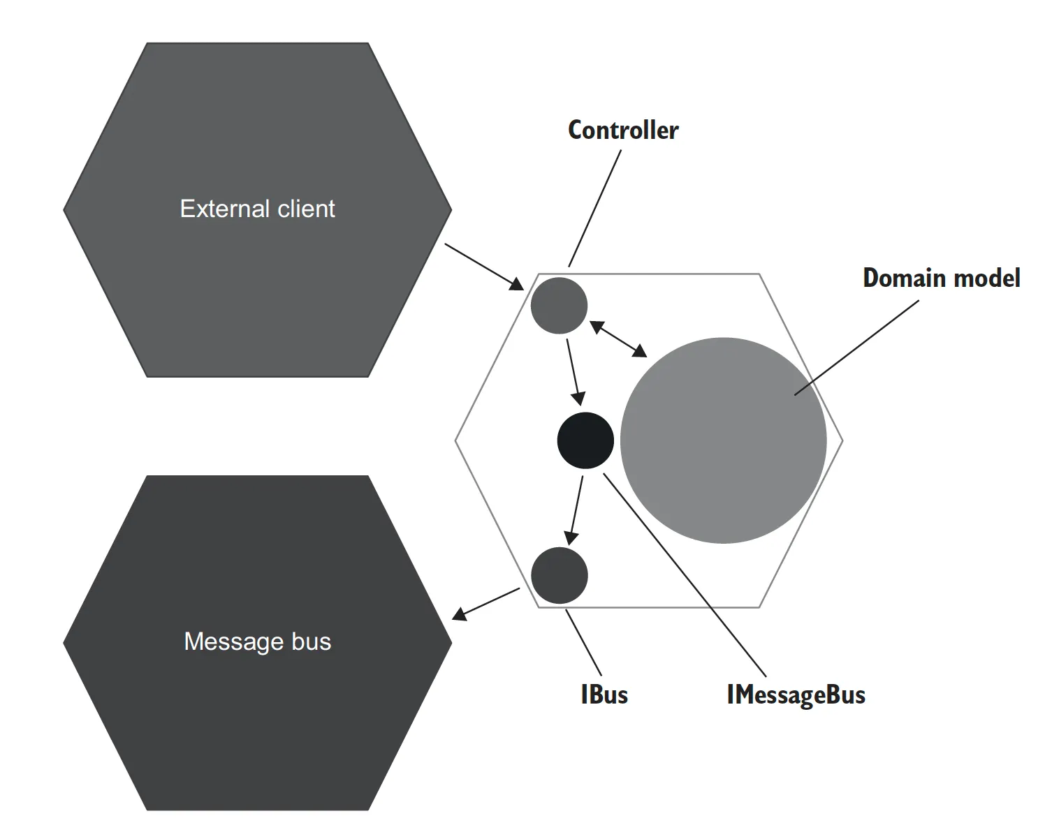 코드의 복잡성, 프로세스 외부 의존성과 통신을 목으로 처리할 수 있다고 생각할 수 있지만 이는 아니다. 해당 원칙은 도메인 모델(복잡도 처리)과 컨트롤러(통신 처리)라는 고유 계층 두 개로 만들어진다.
