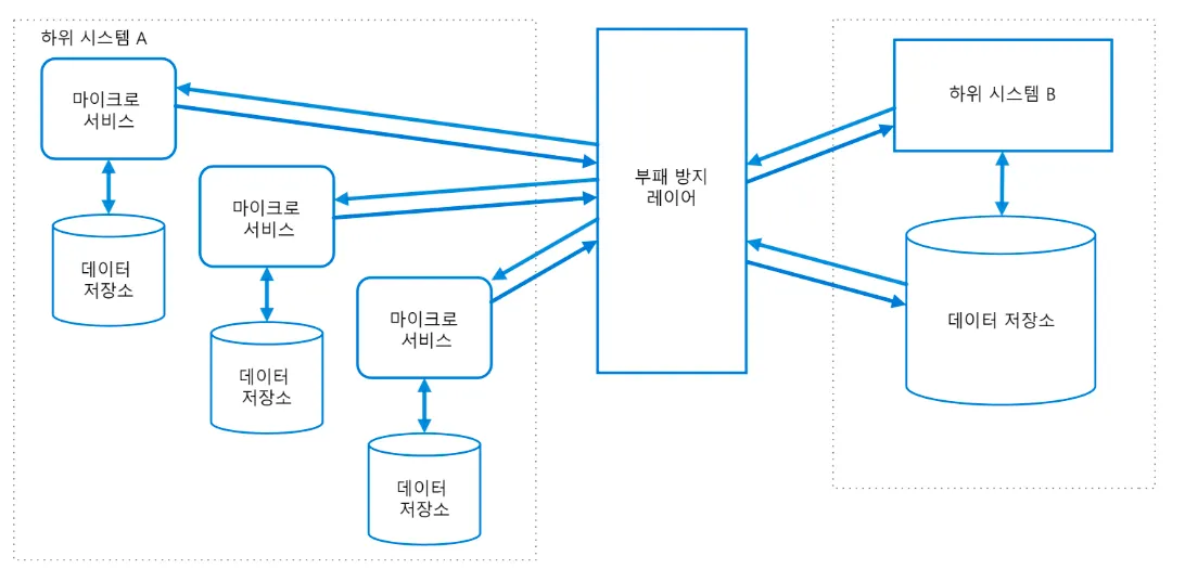 손상 방지 계층은 다른 하위 시스템 사이에 배치하여 하위 시스템 간 격리하도록 한다. 이 레이어는 두 시스템 간의 통신을 변환하여, 다른 응용 프로그램이 해당 디자인 및 기술 방식을 손상시키지 않도록 해당 시스템을 변경되지 않은 상태로 유지하도록 할 수 있다.