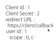Resource Owner가 해당 기능들의 사용을 허용한다면 Resource Server는 요청한 Client_id가 있는지 확인하고 요청이 들어온 redirectURL이 등록된 것과 같은지 비교를 한 뒤에 다음과 같이 user id와 scope를 등록한다.