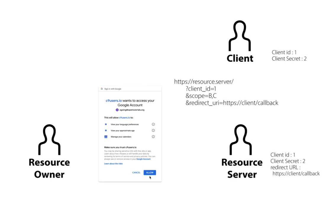 이 과정이 Resource Owner가 다른 서비스의 기능을 활용하기 위한 승인 작업이다.