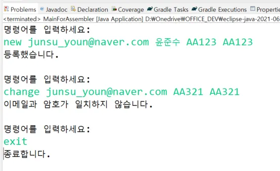 System.out.println("change 이메일 현재비번 변경비번");