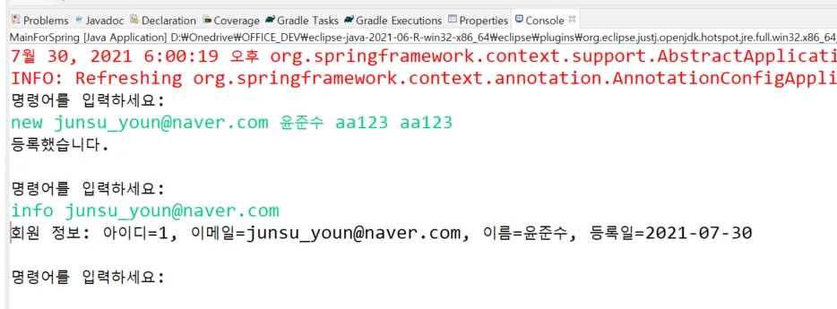 System.out.println("new 이메일 이름 암호 암호확인");
