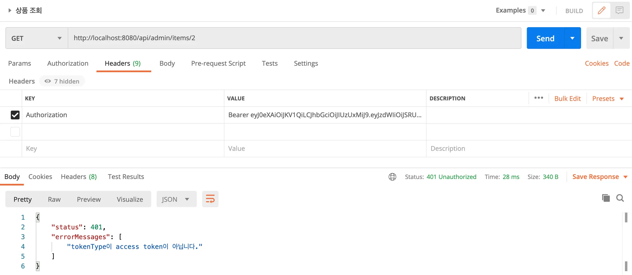 throw new AuthorizationException(NOT_ACCESS_TOKEN_TYPE); // access 토큰이 아닐 때