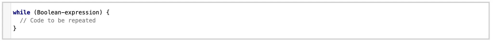 The most basic form of repetition uses the while keyword. This repeats a block as long as the controlling Boolean expression is true: