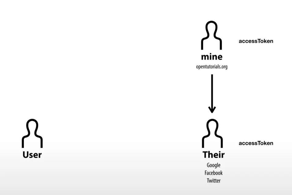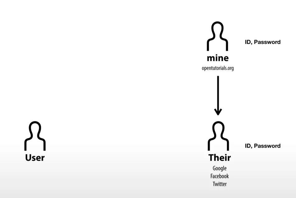 User - 사용자, mine - 내가 만든 서비스, Their - 다른 서비스(Google, Facabook, Twiter 등)