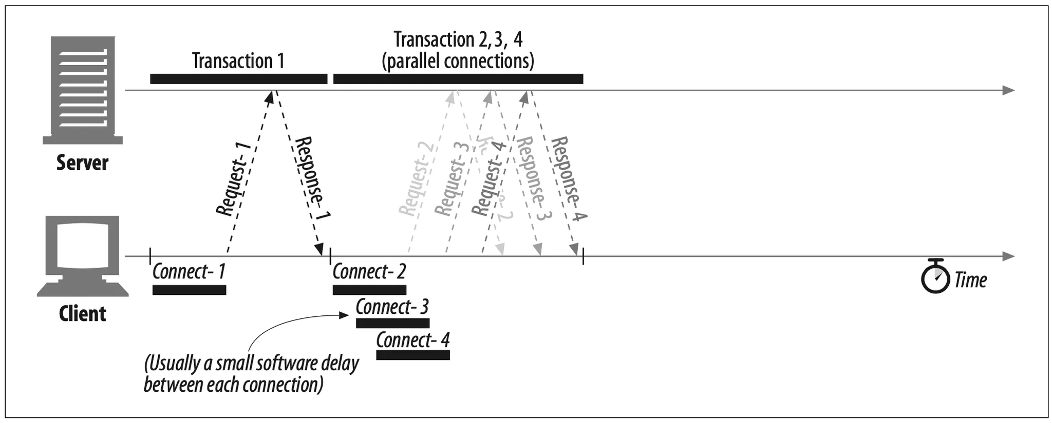 Figure 4-18. Four transactions (pipelined connections)