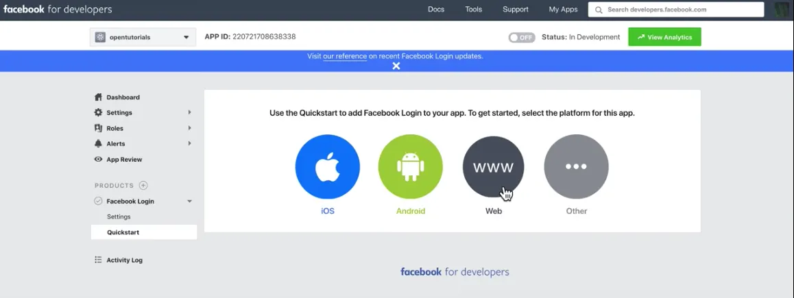 우리는 Facebook Login을 이용할 거기 때문에 Facebook Login의 Set Up을 클릭한다.