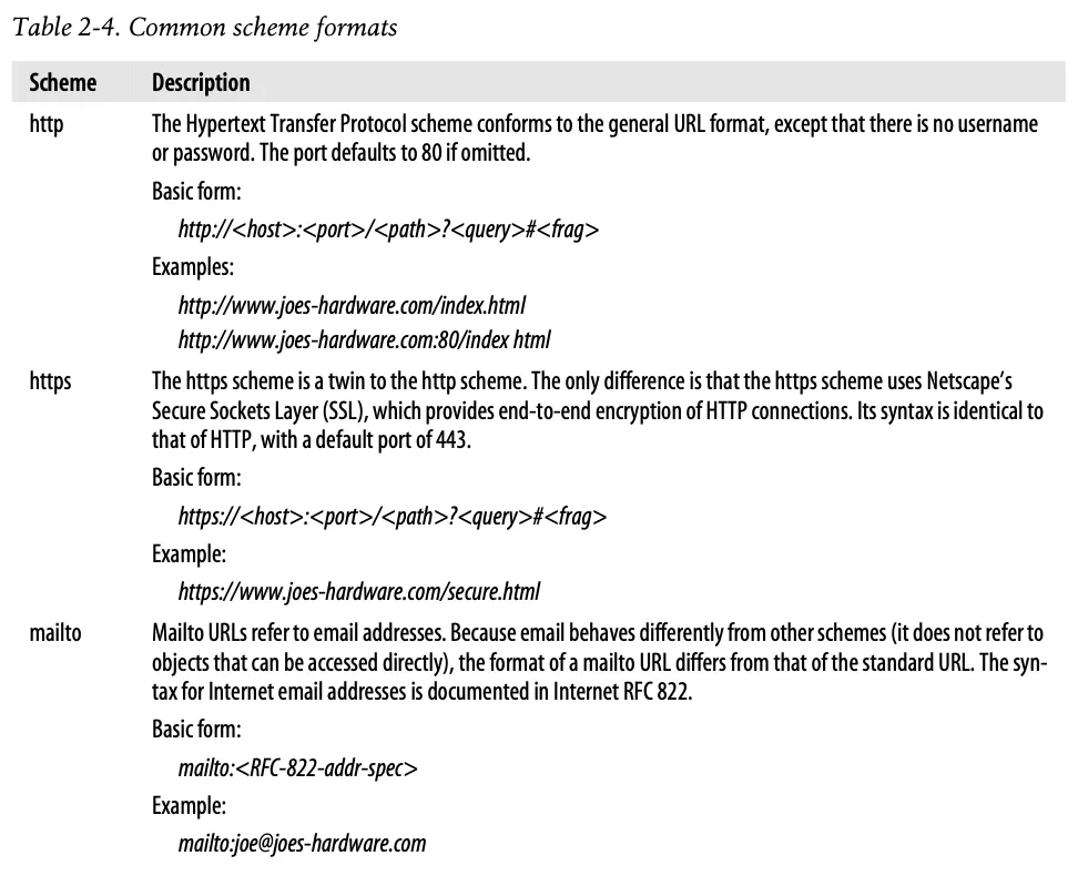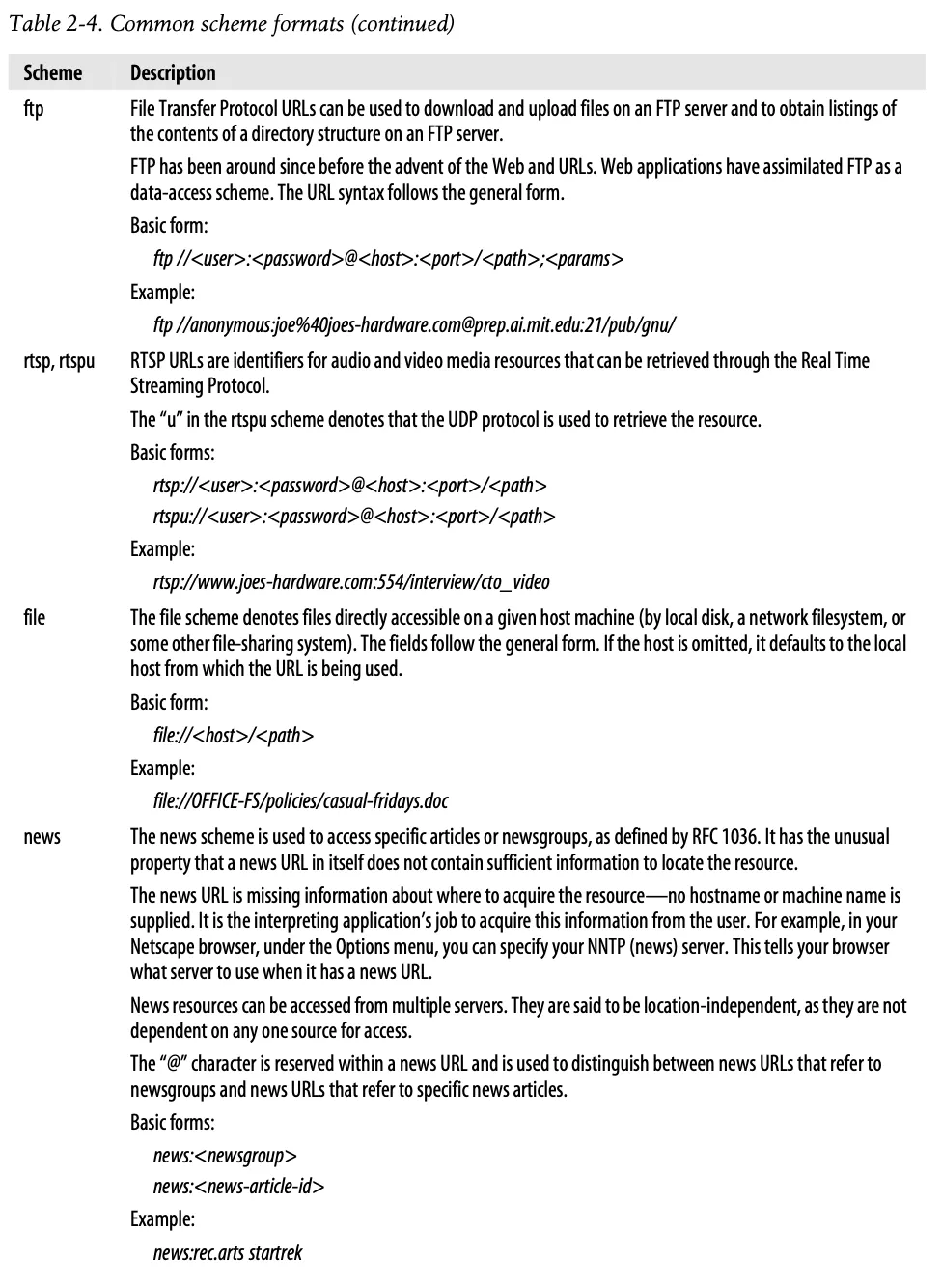 웹에서 쓰이는 일반 스킴들의 포맷에 대해 알아본다. 부록 A에는 스킴 목록이 상당히 자세히 나열되어 있으며 스킴 각각에 대한 문서 정보가 기술되어 있다.