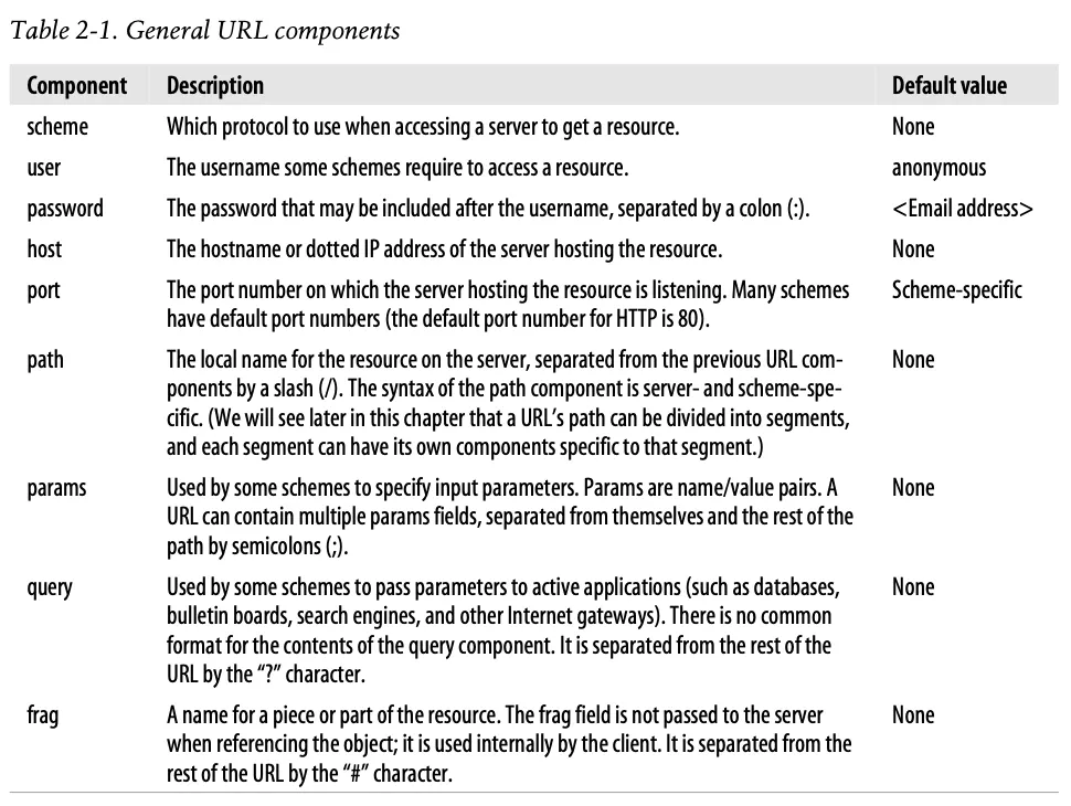 컴포넌트 중에서 스킴, 호스트와 포트, 경로에 대한 설명을 이어간다. 나머지는 책이나 위의 표를 참조