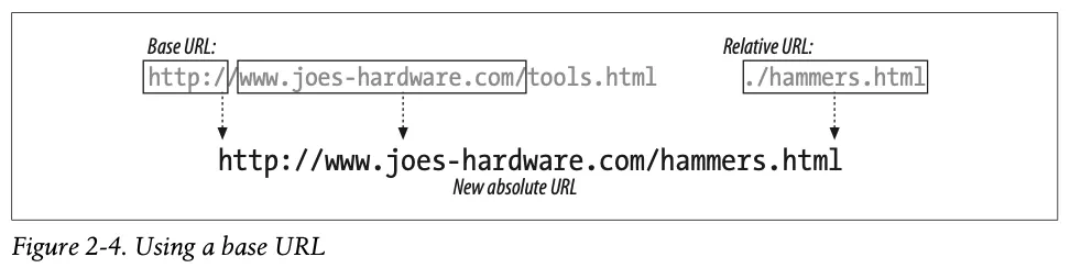 상대 URL 컴포넌트와 상속받은 컴포넌트를 합치면 새로운 절대 URL인 http://www.joes-hardware.com/hammers.html을 얻을 수 있다.