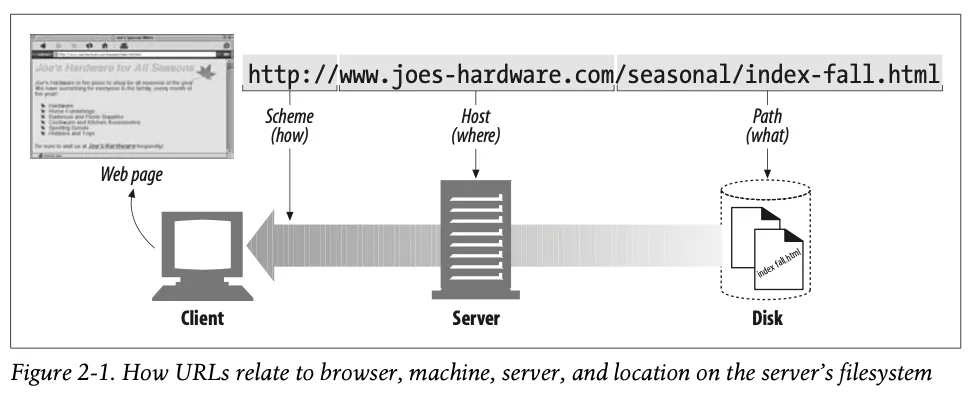 애플리케이션이 인터넷에 있는 리소스를 찾으려면, 리소스를 호스팅하고 있는 장비와 그 장비 내에서 리소스에 접근할 수 있는 서버가 어디에 있는지 알아야 한다.
