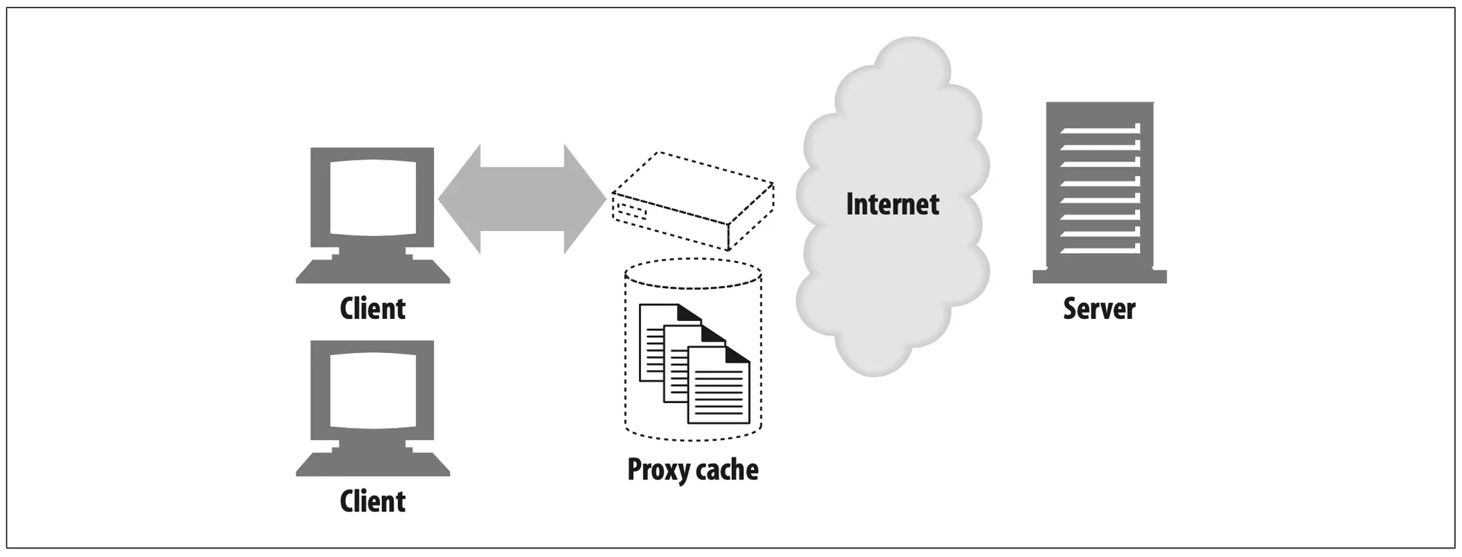 A web cache or caching proxies is a special type of HTTP proxy server that keeps copies of popular documents that pass through the proxy. The next client requesting the same document can be served from the cache's personal copy (see Figure 1-12).