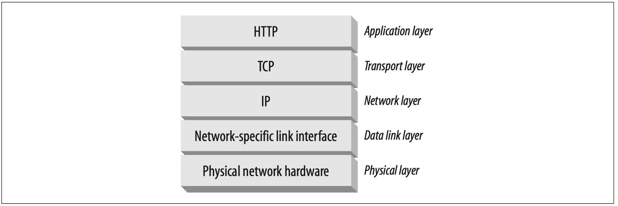 In networking terms, the HTTP protocol is layered over TCP. HTTP uses TCP to transport its message data. Likewise, TCP is layered over IP (see Figure 1-9).