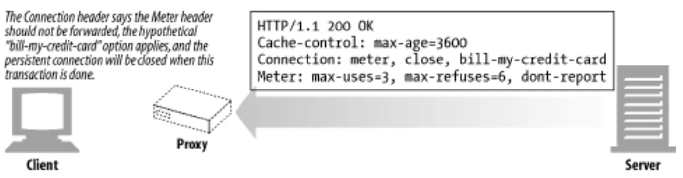프락시와 게이트웨이는 메시지를 전달하거나 캐시에 저장하기 전에 Connection 헤더에 명시된 모든 헤더 필드와 Connection 헤더를 제거한다.