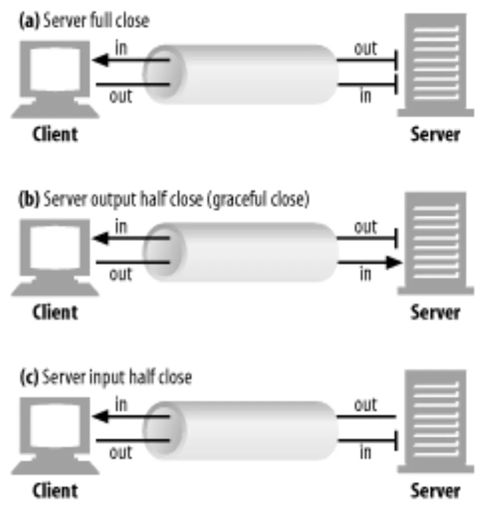 클라이언트가 더이상 데이터를 보내지 않는다고 확신할 수 없는 이상 입력 채널을 끊는 것은 위험하다.