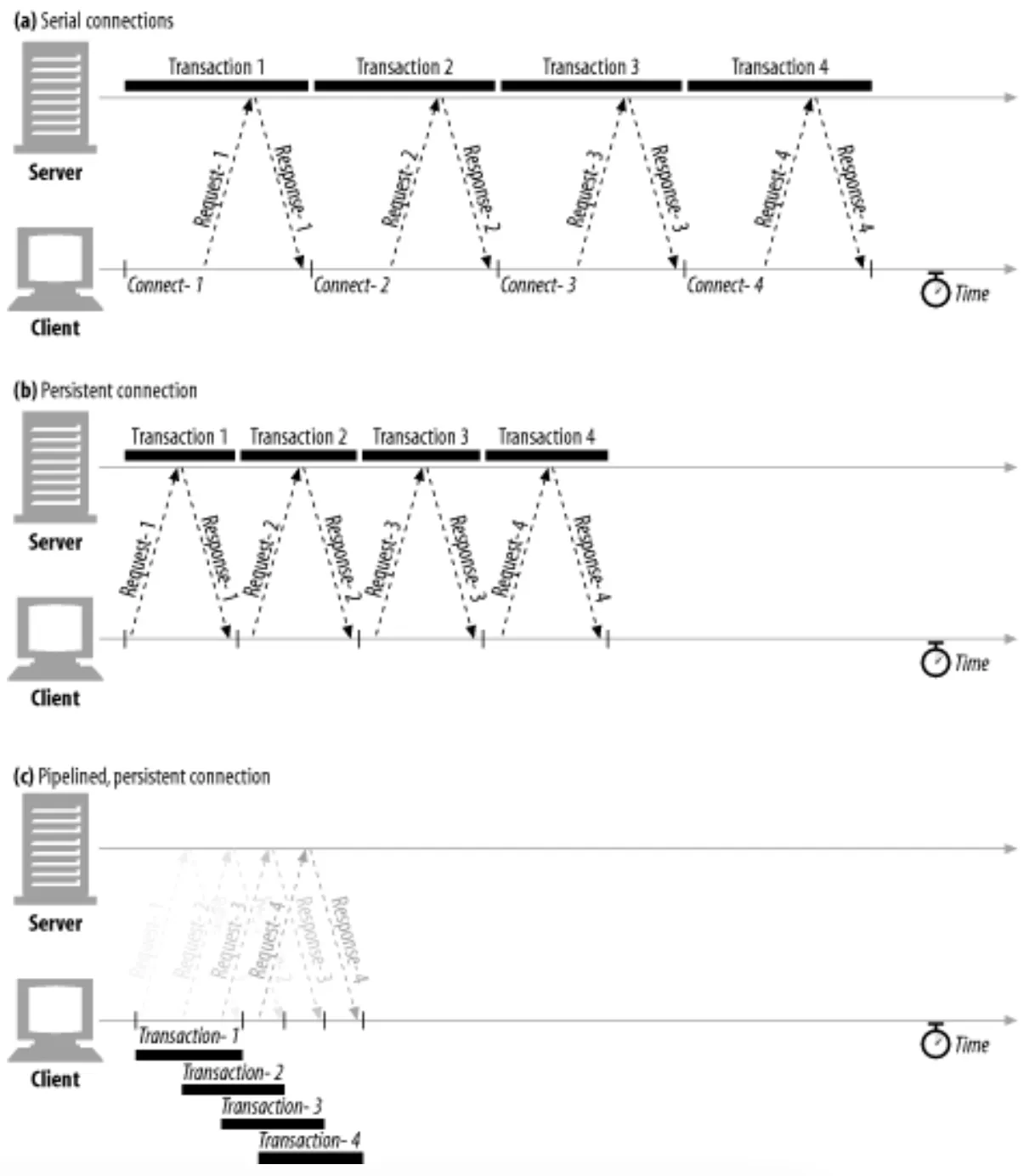 파이프라인의 경우, 일정 시간 동안 아무런 요청 메시지를 전송하지 않으면 서버는 그 커넥션을 끊을 수 있다.