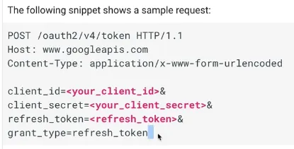 구글에서는 아래와 같이 /oauth2/v4/token 으로 client_id, client_secret, refresh_token(원래 가지고있던 토큰), grant_type을 전송하면 JSON형식으로된 응답을 준다.