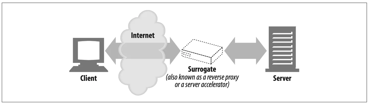 어떤 프록시들은 웹 서버인 것처럼 위장한다. 그렇기 때문에 대리(surrogate) 혹은 리버스 프록시로 불리는 이들은 진짜 웹 서버 요청을 받지만 웹 서버와는 달리 요청 받은 컨텐츠의 위치를 찾아내기 위해 다른 서버와 커뮤니케이션을 시작한다.